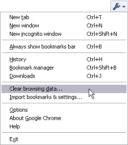 - A dialog titled Clear Browsing Data will appear. Select the items you wish to delete, choose the time period, and then click the Clear Browsing Data button.